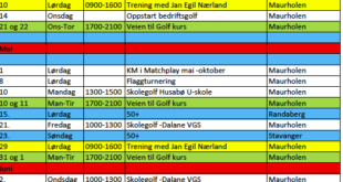 Lørdag 29 mai er det golftrening med Jan Egil Nærland. Nærland er en anerkjent golfpro (trener) så her er det mulighet for å få en kickstart på golfsesongen med gode tips. Trening blir tilpasset ditt nivå og ambisjoner med golfen. Tema for trening kan være sving, nærspill og putting.