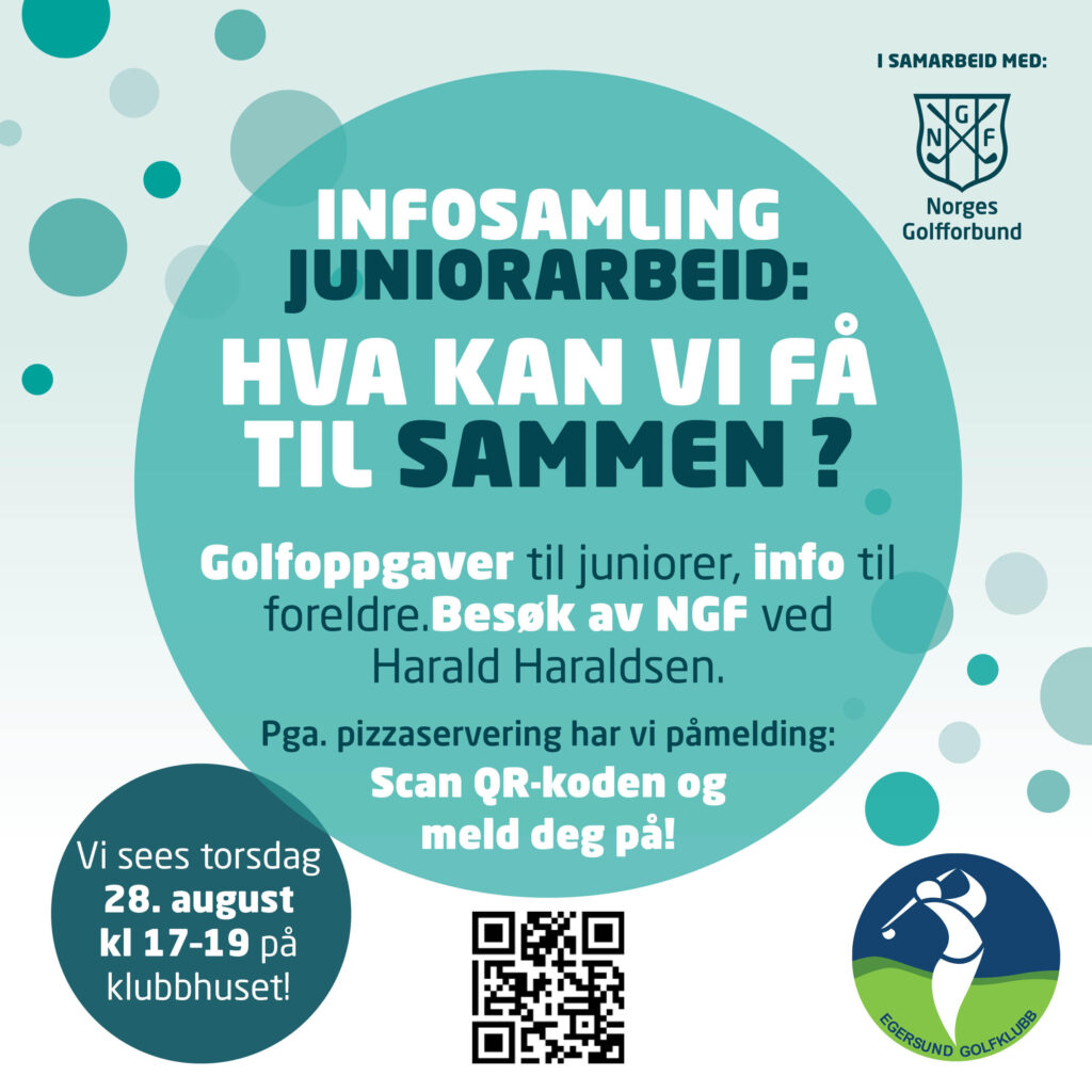 Førstkommende torsdag kl 17-19 arrangerer vi en kick-off samling på golfbanen der vi ønsker barn og ungdom med foreldre/besteforeldre velkommen til en samling. Det vil være aktiviteter for alle. Avslutter med en liten diskusjon om veien videre.